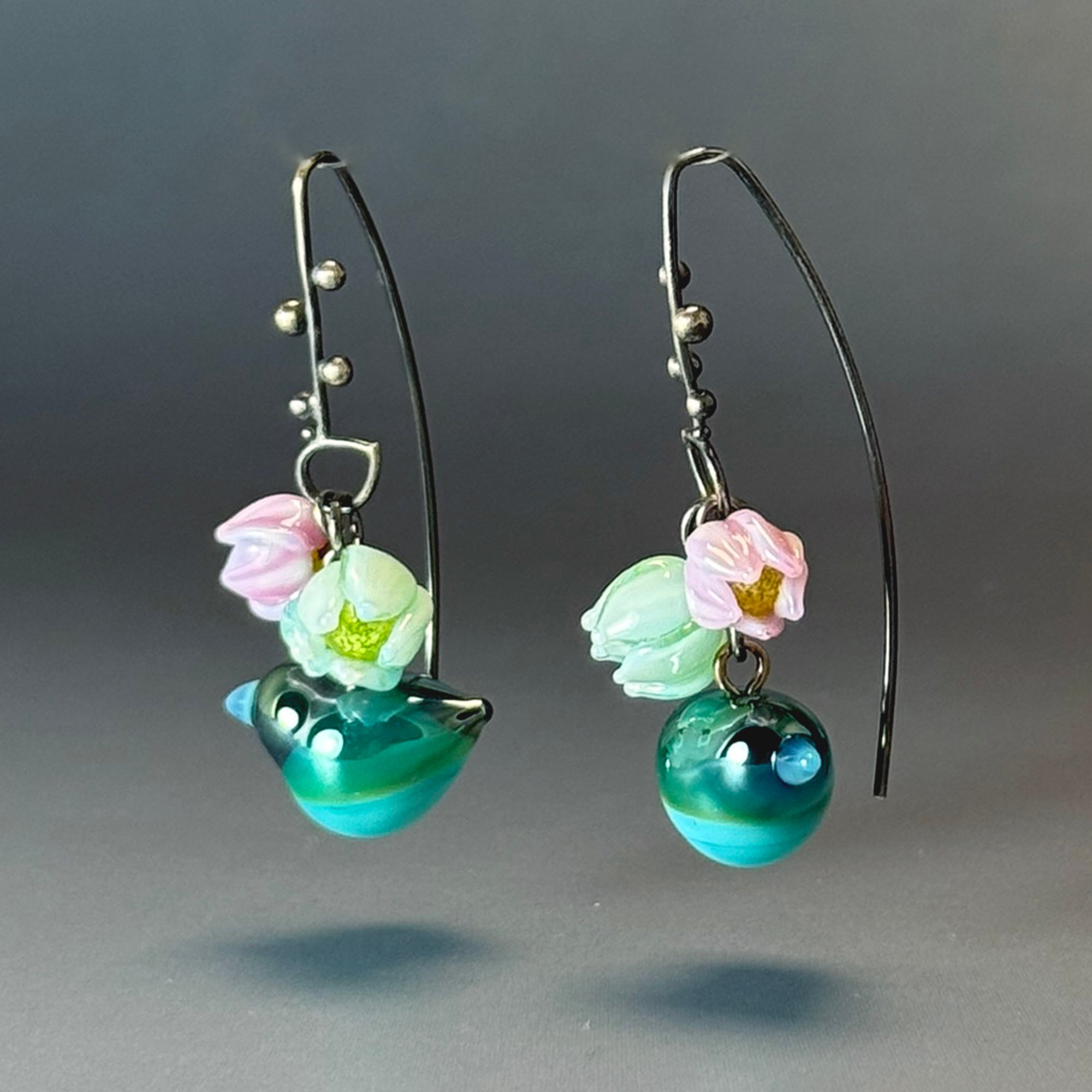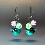 Birds Amidst Flowers: Art Glass Statement Earrings.
